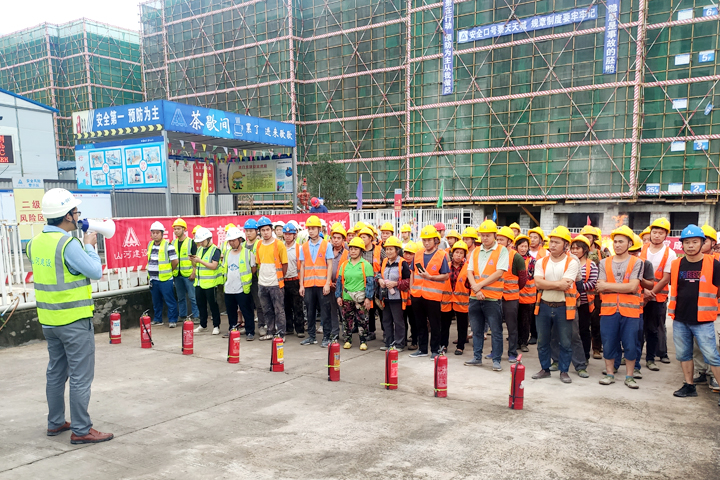 活動(dòng)現(xiàn)場(chǎng),項(xiàng)目管理人員、勞務(wù)施工人員整齊列陣,相關(guān)負(fù)責(zé)人講解了有關(guān)火災(zāi)現(xiàn)場(chǎng)的應(yīng)急處置方案,滅火器的原理、基本操作方法、注意事項(xiàng)等。演練人員按照預(yù)案,使用水槍、滅火器對(duì)“起火點(diǎn)”進(jìn)行滅火操作,熟練掌握了消防器材的使用方法。