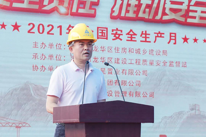 活動伊始,海南公司副總經理李發(fā)生作為企業(yè)代表發(fā)言。他對山河集團、海南公司及昌榮星城項目的情況進行了介紹,分享了集團安全管理工作的做法和經驗,并承諾公司將牢固樹立安全發(fā)展理念,堅決筑牢安全生產防線,確保項目建設穩(wěn)步推進。