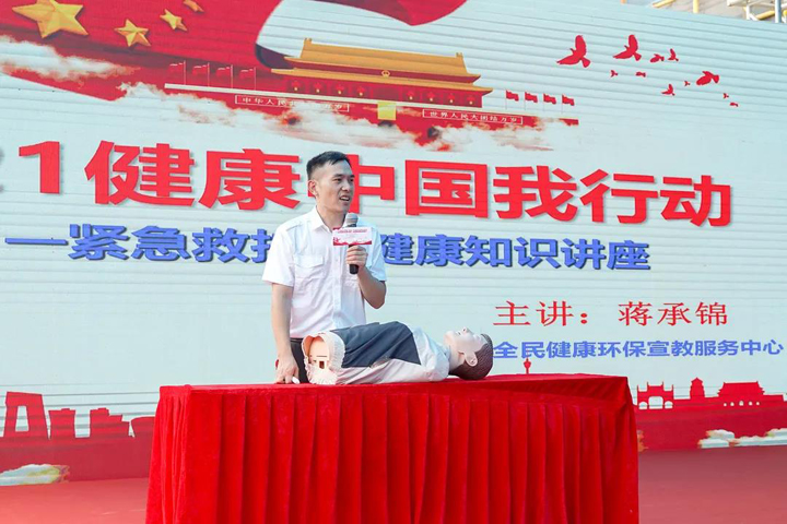 最后,受邀來到現場的專家進行了緊急救護(AED應急救護)知識講座,通過理論知識講解與救護技能實際操作相結合的方式,利用人體模型,現場演示了心肺復蘇技能、氣道異物阻塞應急救護技能和AED操作使用方法。