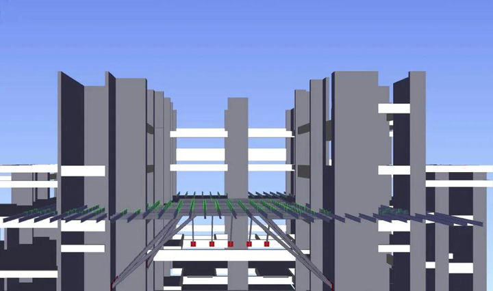 凌空大跨度懸挑結構是目前較為流行的建筑結構類型之一,帶來強烈視覺沖擊力的同時,也給工程施工帶來了巨大挑戰(zhàn)。由于跨度大、荷載復雜,對施工平臺的要求較高,高空作業(yè)的安全隱患也隨之增加。河南公司工程團隊在平頂山恒大珺睿府項目施工中,以屋面花架施工為依托,針對凹形凌空大跨度懸挑結構(凹形兩側為樓梯間+電梯井形式)的施工進行課題攻關,總結出了凹形凌空大跨度懸挑結構施工工法。