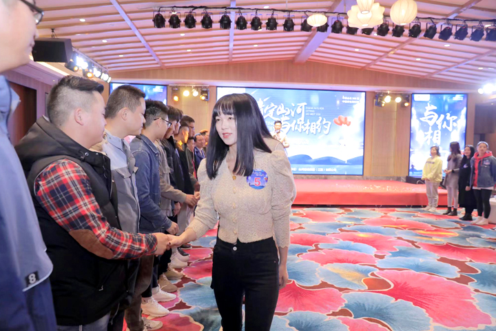 下午14時,男女嘉賓懷著激動又忐忑的心情,陸續(xù)到達(dá)會場。背景墻上,俊男靚女的照片及個人簡介一一展示,TA們自信的笑容充滿著感染力。在輕快的音樂聲中,一顆愛意滿滿的紅心緩緩升起,活動正式拉開帷幕。帶著對愛情的美好向往,男嘉賓列隊迎接女嘉賓閃亮登場。TA們對視微笑,依次握手3秒,在短短的一瞬間,也許已經(jīng)觸發(fā)了愛的信號。