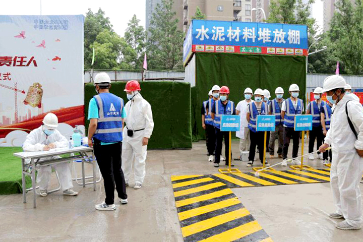 防疫部門工作人員抵達(dá)現(xiàn)場,并將發(fā)熱人員轉(zhuǎn)運至醫(yī)院后,項目部立即封鎖大門,排查密切接觸人員并安排隔離觀察,防疫演練結(jié)束。