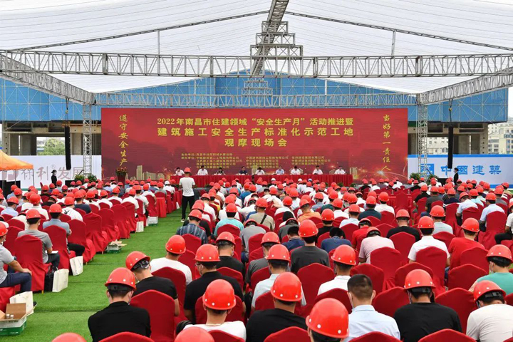 示范工地現(xiàn)場(chǎng)觀摩:6月17日,2022年南昌市住建領(lǐng)域“安全生產(chǎn)月”活動(dòng)推進(jìn)暨建筑施工安全生產(chǎn)標(biāo)準(zhǔn)化示范工地觀摩現(xiàn)場(chǎng)會(huì)舉行。江西公司承建的湖城大境項(xiàng)目作為分會(huì)場(chǎng)之一,迎來(lái)了參加觀摩的代表,大家先后參觀了項(xiàng)目的安全文明施工標(biāo)準(zhǔn)做法、新工藝應(yīng)用、工序樣板、智慧工地建設(shè)情況等。