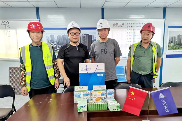 連日來,全國各地持續(xù)晴熱高溫,氣溫創(chuàng)下歷史同期新高,多個地方的最高氣溫超過38℃。當(dāng)前正值盛夏酷暑,建設(shè)者們?nèi)詩^戰(zhàn)在施工一線,戰(zhàn)高溫、保進(jìn)度,項目建設(shè)毫不松勁。為應(yīng)對高溫天氣,保護(hù)勞動者的身心健康,山河建設(shè)集團(tuán)總承包公司組織開展“夏日送清涼”活動,為在建項目一線作業(yè)人員送去十滴水、人丹、清涼油、涼茶等防暑降溫用品,讓大家舒心工作、平安度夏。