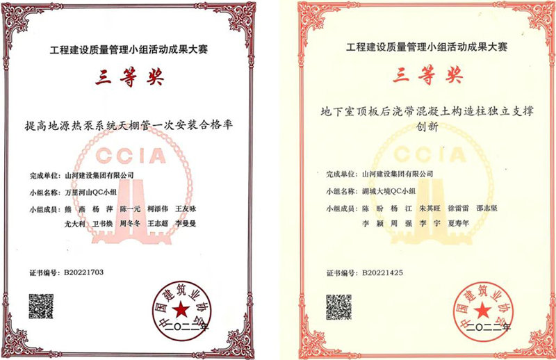 近日,中國建筑業(yè)協(xié)會公布了2022年度工程建設(shè)質(zhì)量管理小組活動成果大賽獲獎名單,山河建設(shè)集團(tuán)申報(bào)的兩項(xiàng)成果榮獲三等獎。