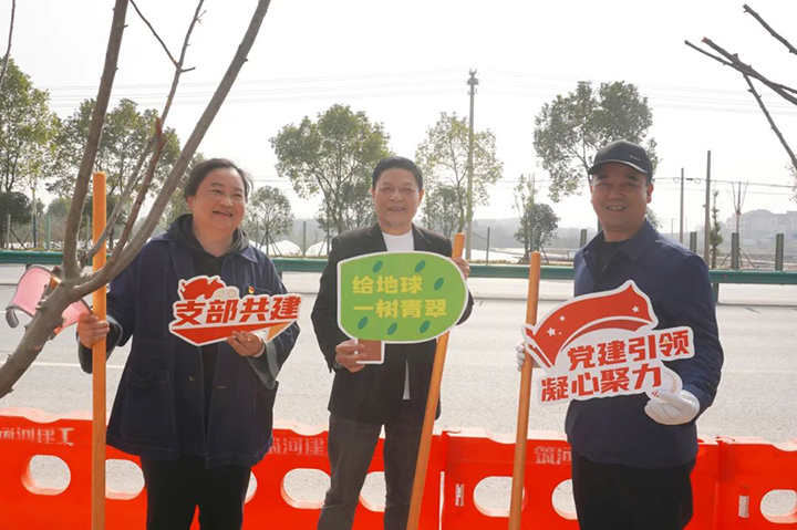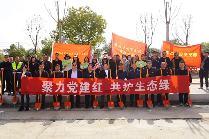 堅持紅色引領(lǐng),助力綠色發(fā)展,3月12日,在第46個植樹節(jié)到來之際,湖北省建設(shè)工程質(zhì)量安全協(xié)會黨支部、黃岡市城市建設(shè)有限公司機關(guān)黨支部、湖北筑河建筑工程有限公司黨支部聯(lián)合開展“聚力黨建紅 共護生態(tài)綠”義務(wù)植樹主題黨日活動。