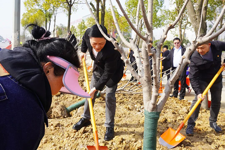 揮鍬鏟土、扶苗填壓、培土澆水……大家分為三人一組,通力合作,配合默契,種下一棵棵象征生機與希望的苗木。經(jīng)過一番辛苦勞作,一株株樹苗列成整齊的隊伍,迎著和煦的陽光昂首屹立,呈現(xiàn)出一片濃濃的春意。它們將在建設(shè)者的呵護下蓬勃生長,扮靚城市顏值。